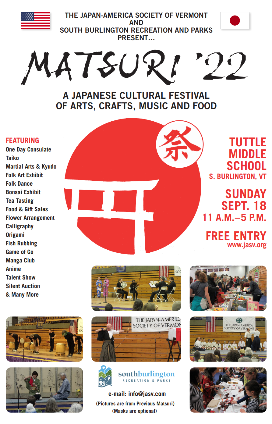 JASV host Matsuri '22 at Tuttle Middle School in South Burlington on Sunday, September 18, 2022 from 11:00am to 5:00pm